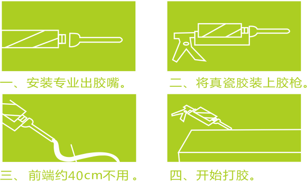 ●不使用前端刚挤出的约40cm胶体,禁止胶嘴重复使用;